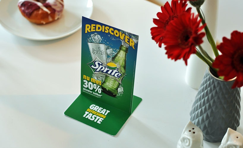 STICK ’N’ GLIDE is a patented table top display unit that is easy to apply and remove but will stay in place on any level surface. As it can be printed on both sides STICK ’N’ GLIDE is perfect for table and counter-top messaging, specials menus and desktop calendars.